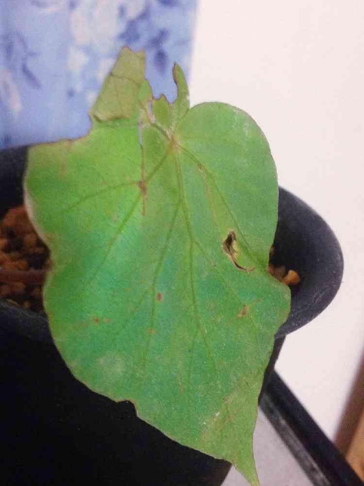 先日植え付けたベゴニアのパボニナ、そこそこ光を青く反射するようになってきました。