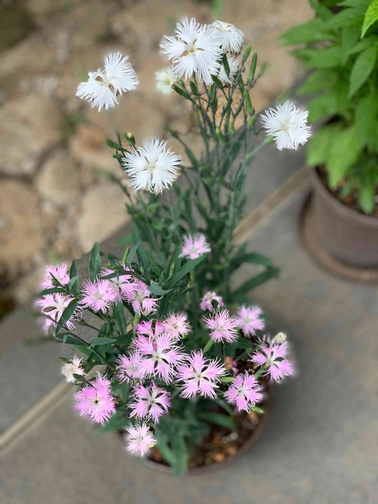 河原撫子の白とピンクを購入して、寄せ植えにしました^_^可憐な花