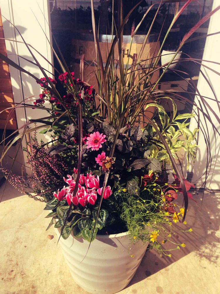 picは、秋らしく、明るい寄せ植えという事で✨パープルファウンテングラスを使ってシックな銅葉ダリアと、宿根ネメシアの寄せ植えです(๑>◡<๑)