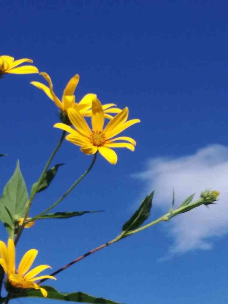 青空に黄色の菊芋の花が風にそよぎ綺麗でした✨✨✨
