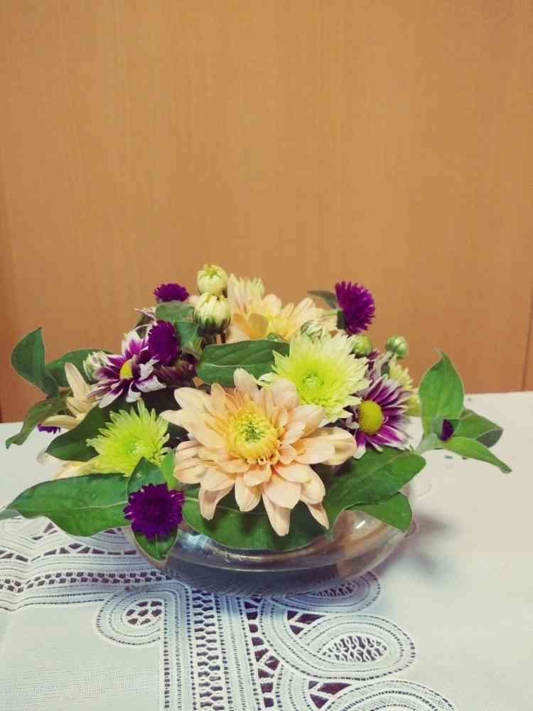 丸い透明のガラス器に、丸いオアシスを使っていけてみました。