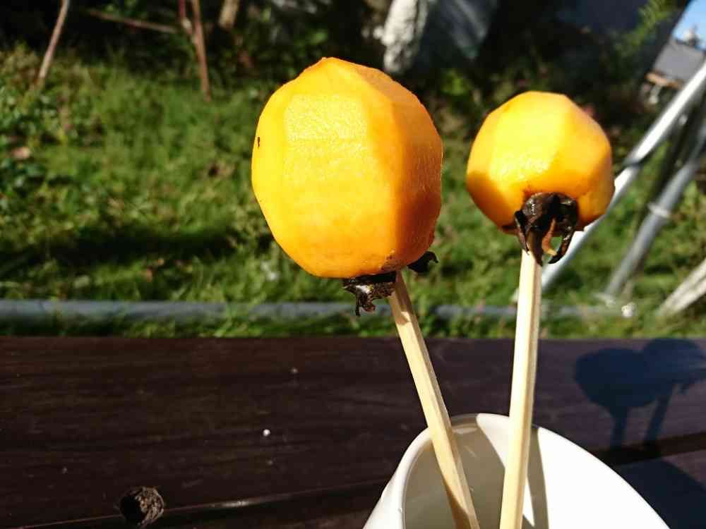 台風でほとんどダメだったので、今年は2つだけ干し柿作りました。