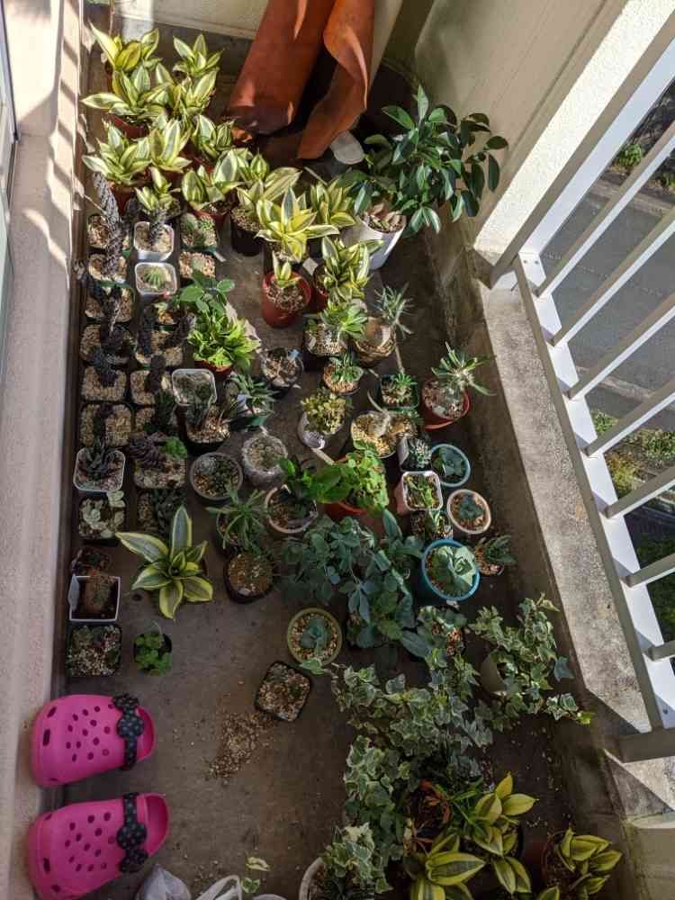 こちら側のベランダは狭すぎてしゃがんで眺めるどころか水やりも困難な状態でしたよ(笑)