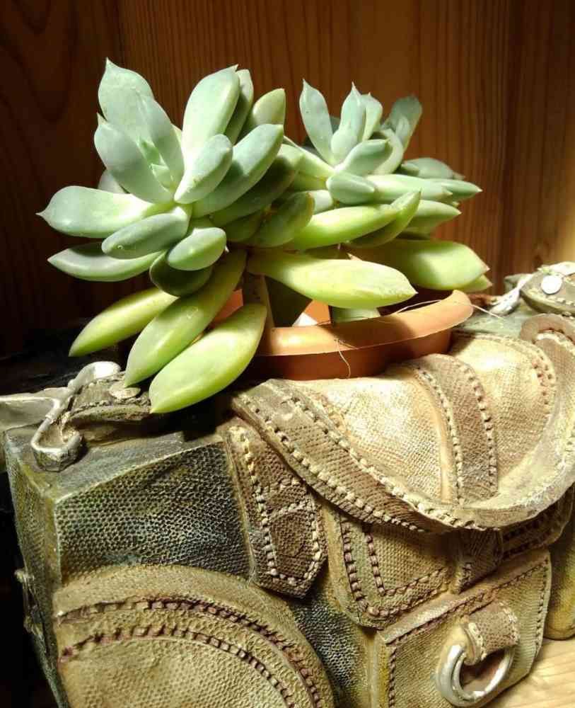 やった‼️✌️イイ感じですか? この古👜でカバーすれば、多少 多肉が枯れても画になるかと思って! 悪知恵😂
