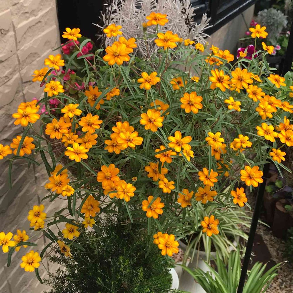 前から好きだったんですがこのジニアは本当によく持っています。ハンギングの隙間にちょこっと植えただけなのにメインのようになりました😍