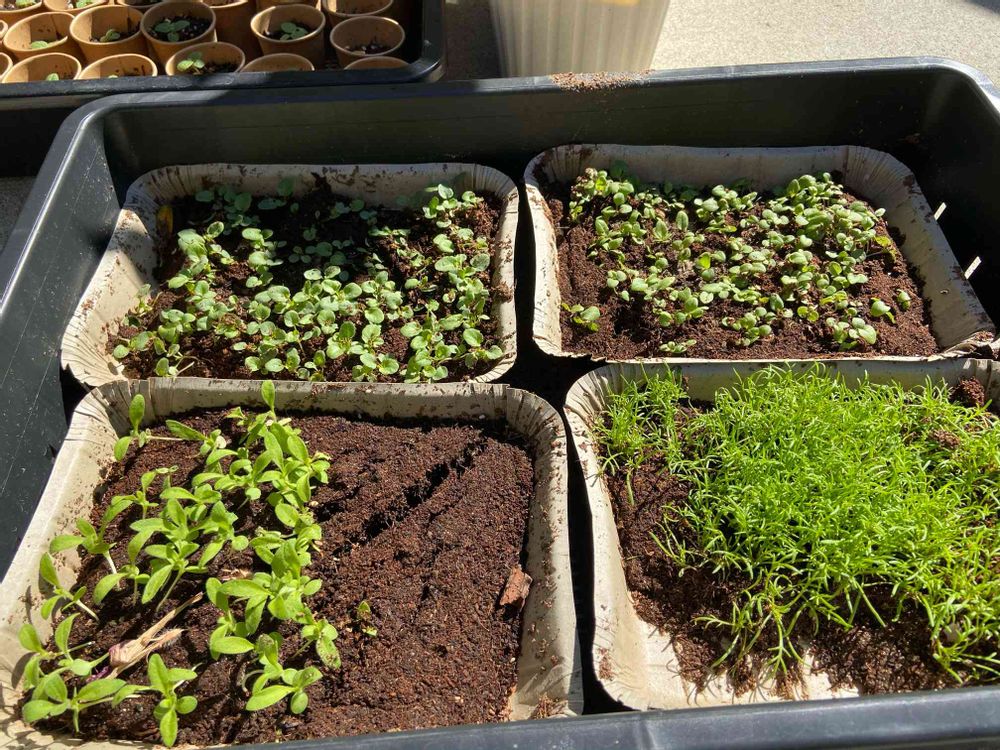 2日経って乾いてきたけど、泥を被ったり倒れてしまったりした芽がとても多くて、急いで鉢上げ終わらせないと…と焦ってます。