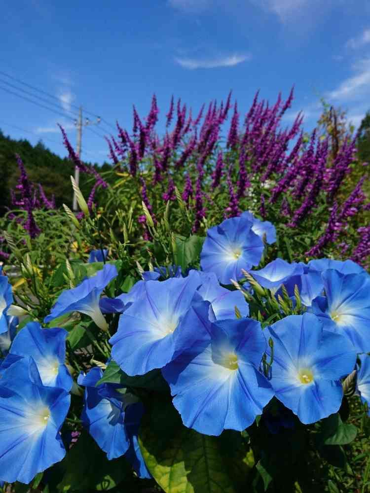ちっちさんさんの小さな庭,西洋朝顔*ヘブンリーブルー,サルビアレウカンサ(アメジストセージ)の投稿画像