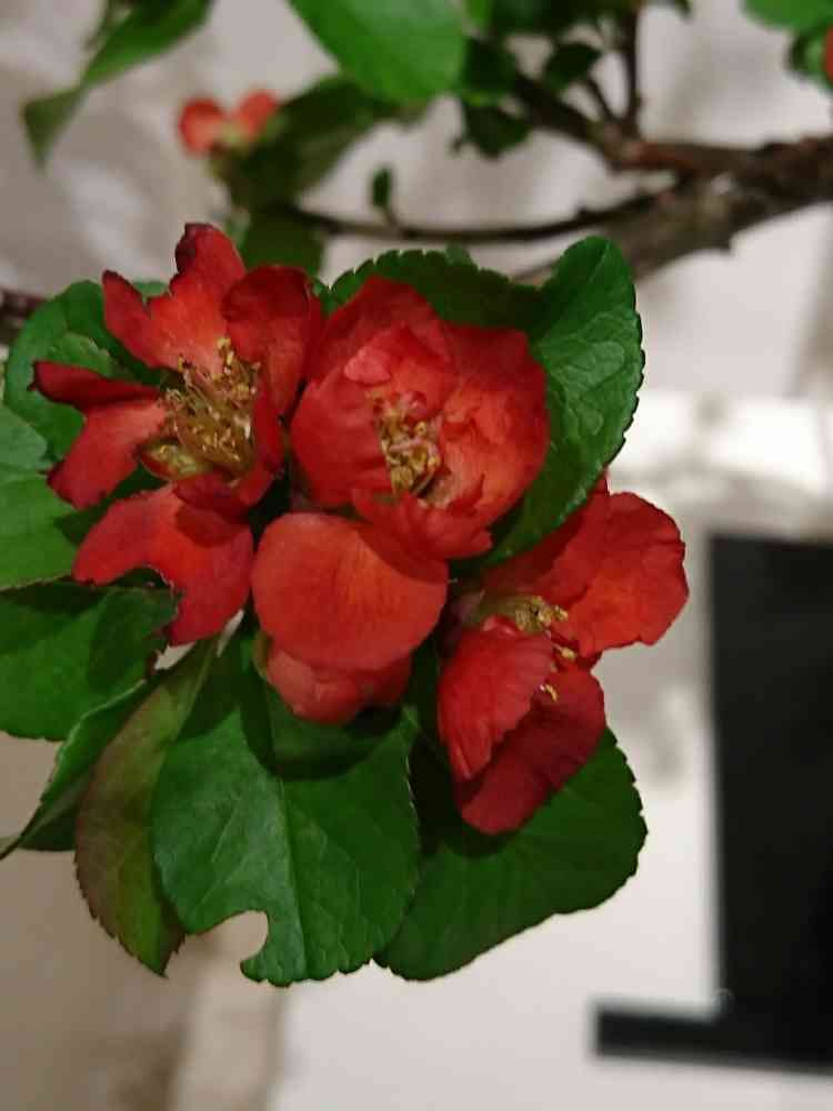 展示会で見た枝に咲く赤い花の名前教えて下さい。