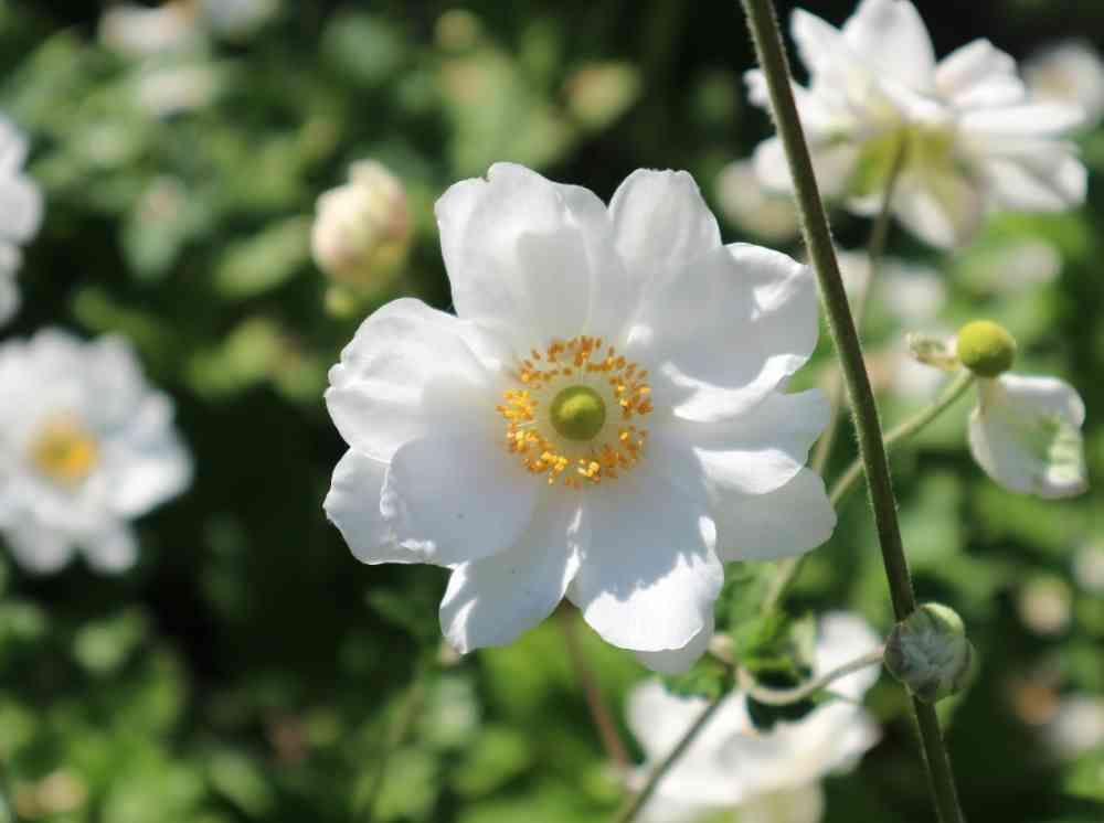 秋の花が次々咲く。シュウメイギク、その白さが眩しいよ😊🌼