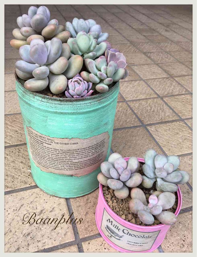 自作のリメ缶に月美人、桃美人、星美人(かな?)をメインに入れたパキ丼出来ました💕