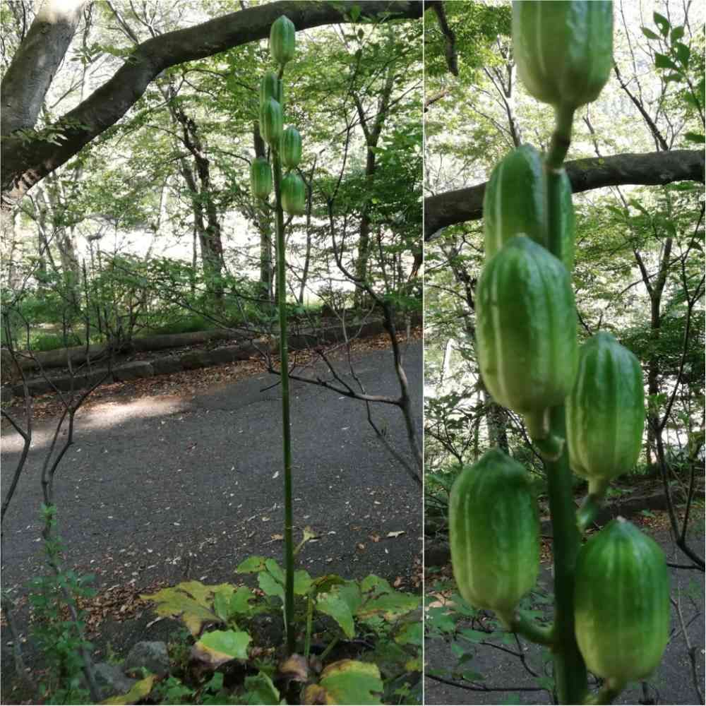 ウバユリはせいぜい1m程度まで、オオウバユリは1.5〜2mぐらいにまでなります😳