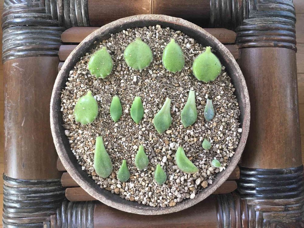 多肉が徒長したので、切って葉挿し組をセット。