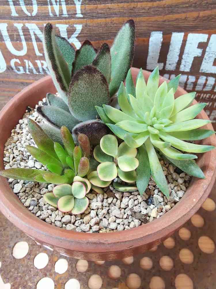 多肉の個数が決まってるから、こじんまり中央に集めて寄せたよ😆
