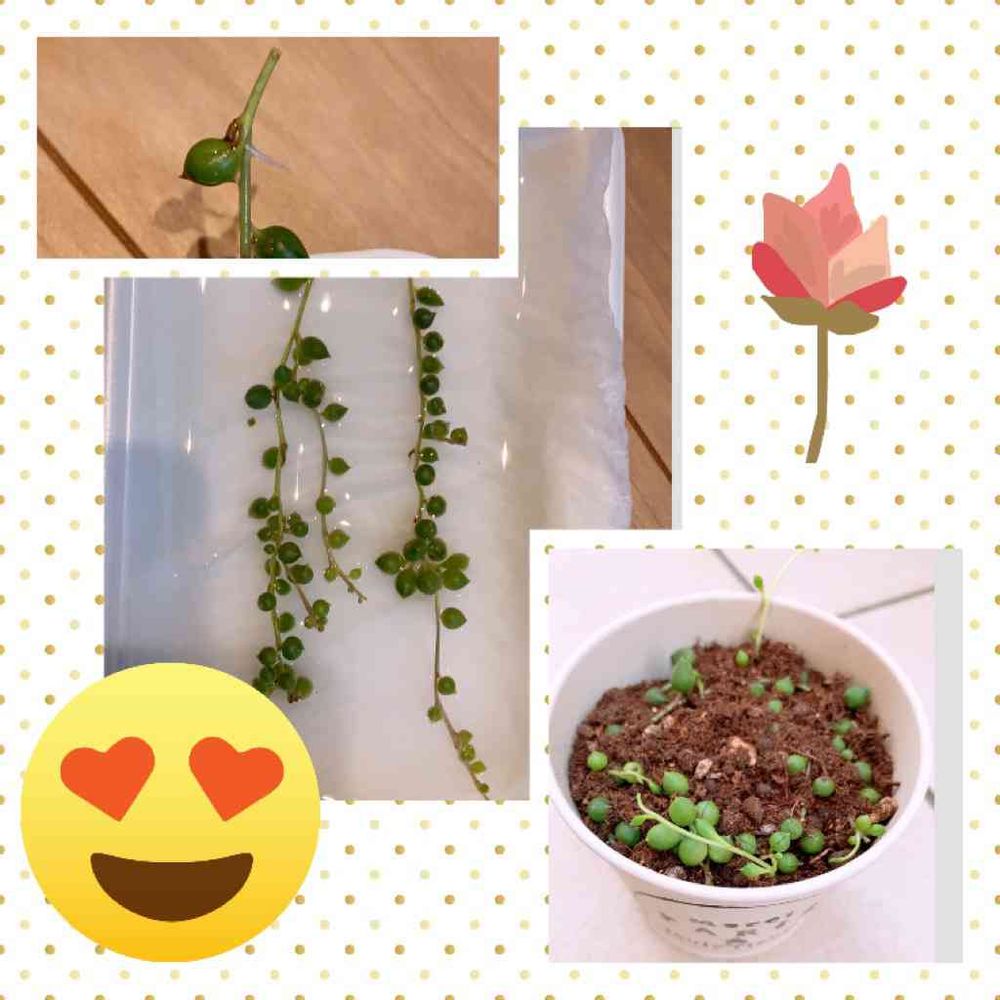 少し前からグリネちゃんの一部をカット✂️して水栽培(といってもトレーに水張っただけですが)していたらニョキニョキと白い根がでてきてくれ、ようやく夕方鉢に🙌