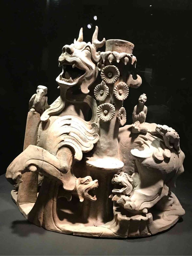 その上にユーモラスな鳥や蟇や仙人が乗っかって、墓の副葬品ながら楽しめる作品。五個の菊花が付いているのでGreen Snapということで。🌼🤗