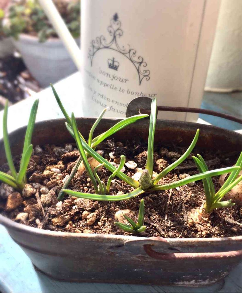 一年前のムスカリ…2週間前に慌てて球根を植えてみましたがちゃんと出てきました💕