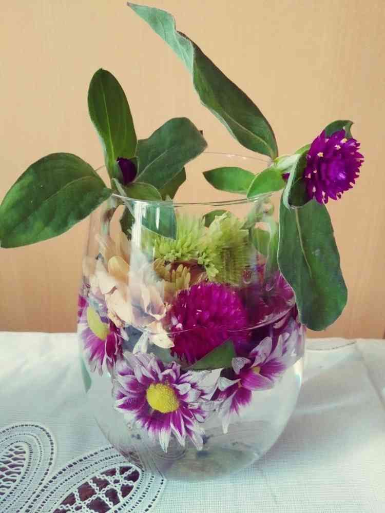 ガラス器にいけてみました🎵