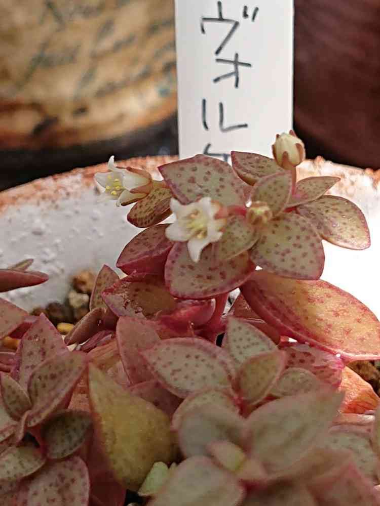 外の棚のヴォルケンシーの花が今日の咲いてたよ😃