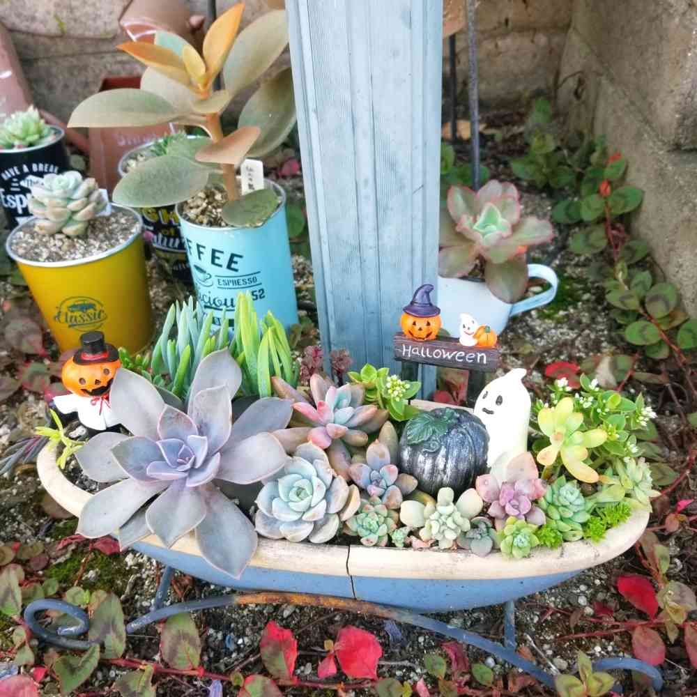 多肉寄せ植えをハロウィン仕様🎃に♪