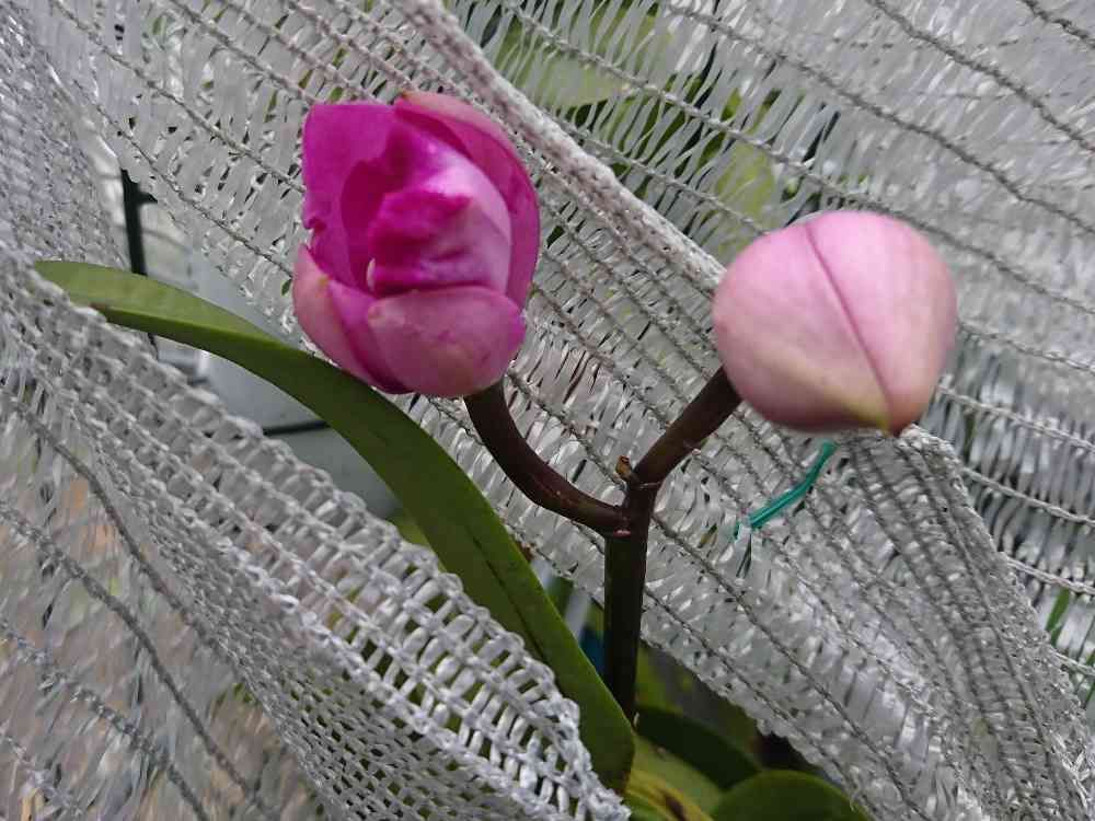 今朝、フェンス外側をチェックしてたらピンク色の妖しいふたりの影を発見。寒冷紗をゴソゴソして継ぎ目のビニタイを外してみたら・・・