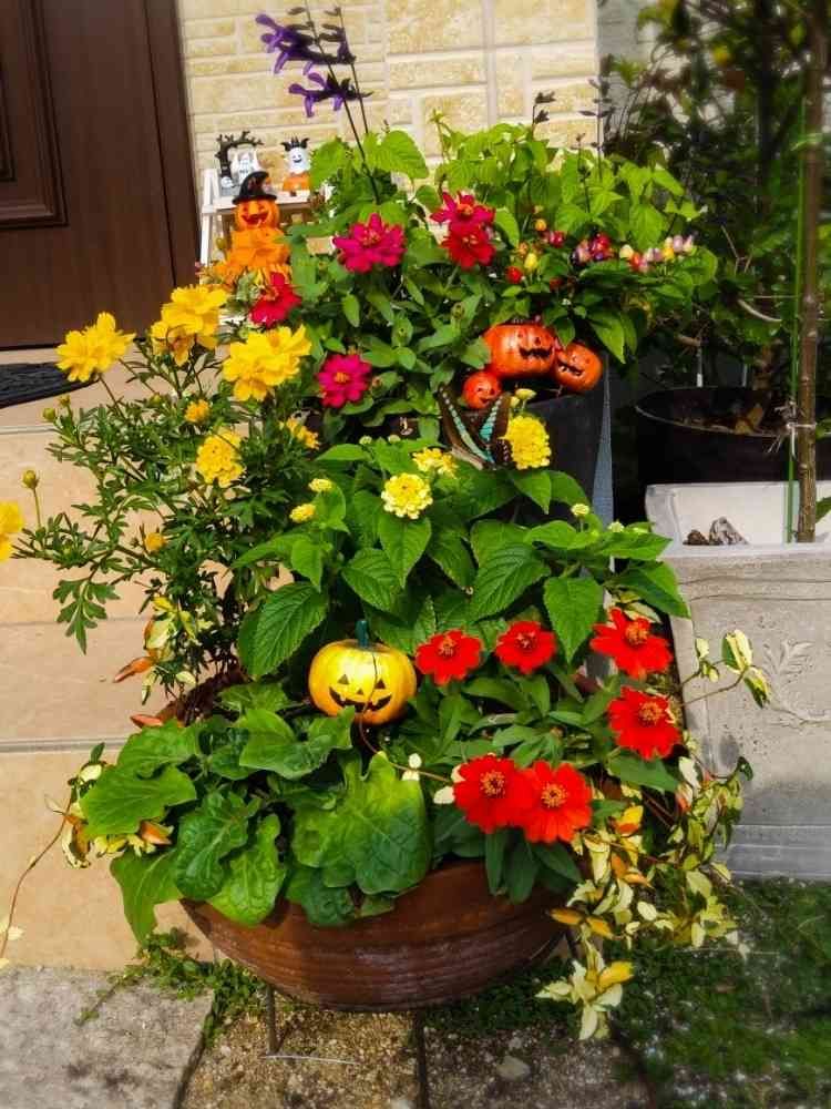 ずっとランタナが咲かなくてさびしかった寄せ植え。やっと咲いて華やかになってきた!!