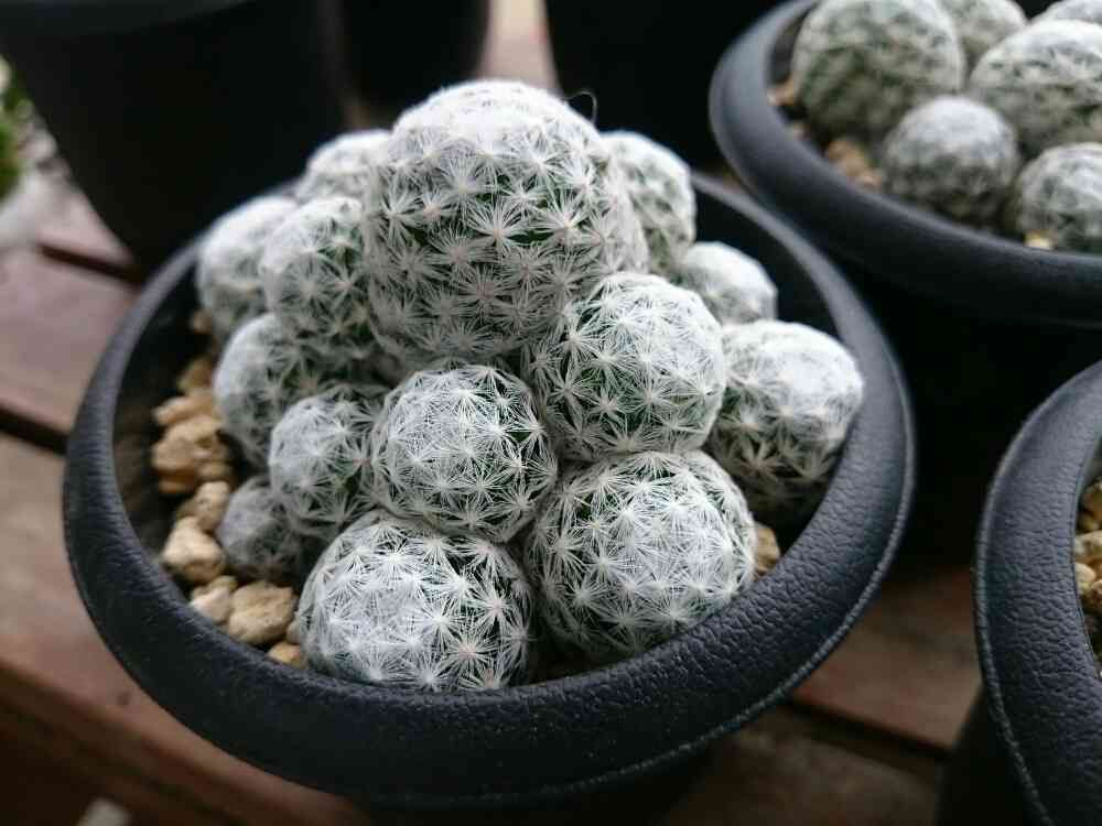 銀手鞠と同じマミラリア属で白いふわふわしたトゲだから触っても大丈夫👍