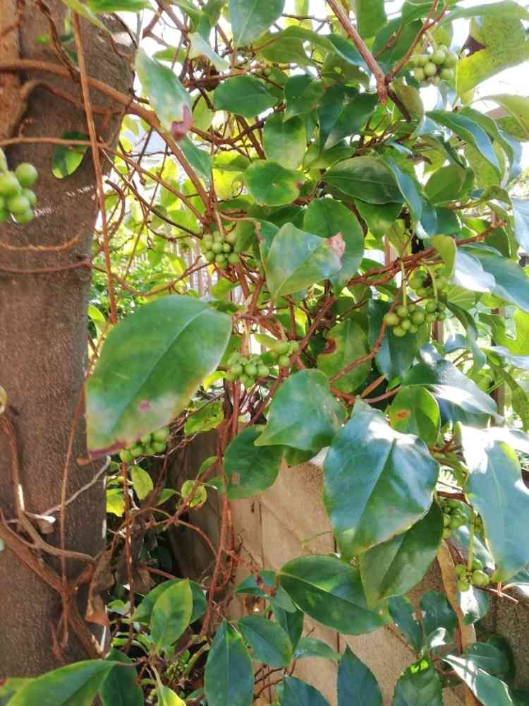 裏庭のアイドル ビナンカズラ 色づいたかなと 見に来たが まだでした😅