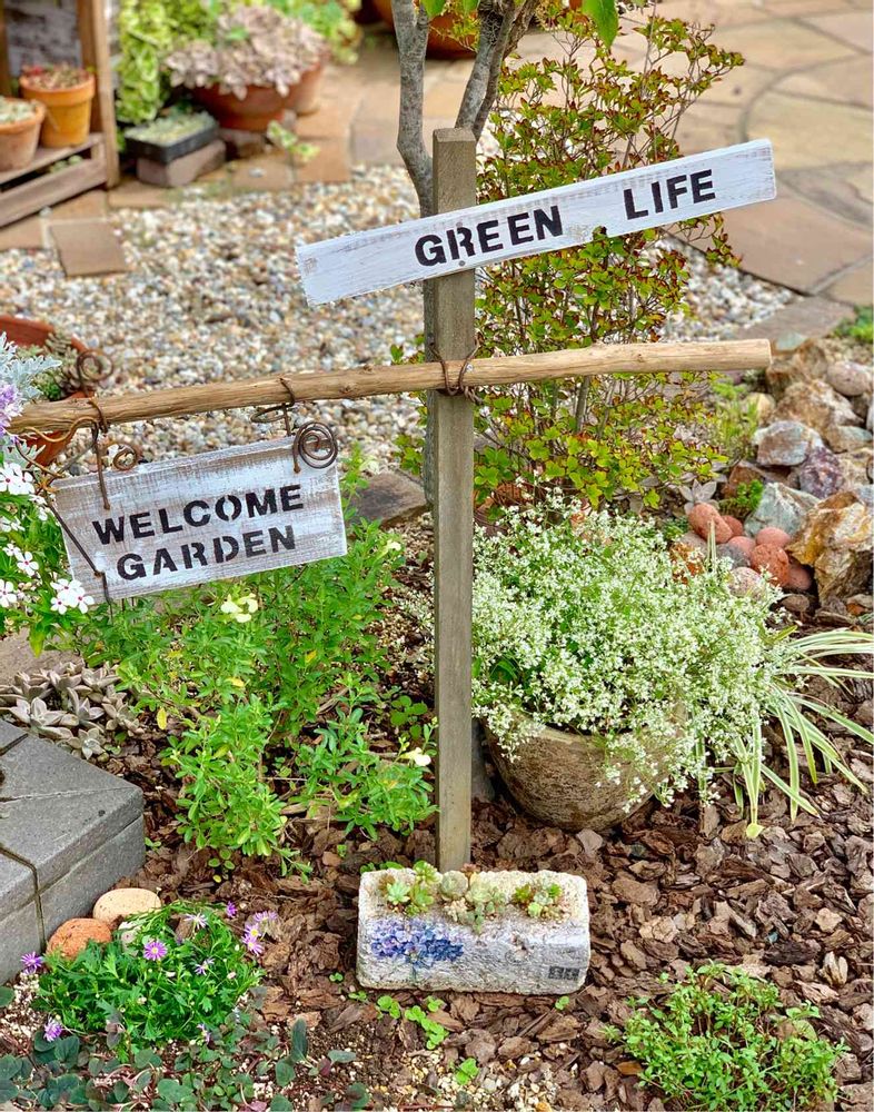 ガーデンピックのおかげで、いい感じになったよ〜❣️庭の1番目立つ所に立てたよ😊