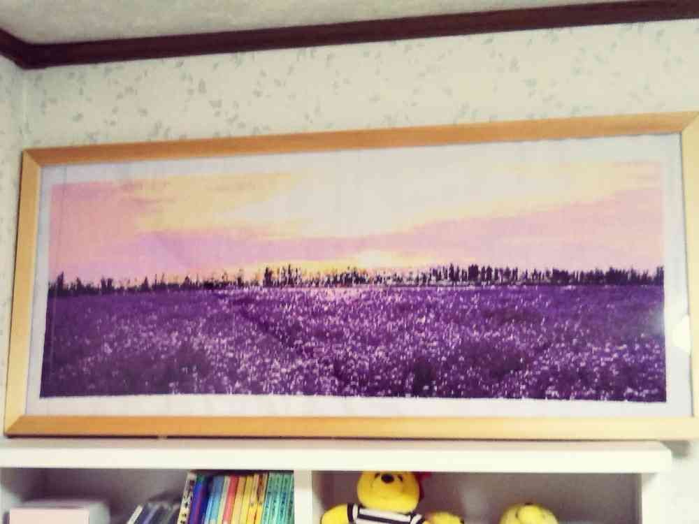 この作品はかなり大きくて、市販に合う額が見つからなくて、友達のお父さんの手作りなんです。お父さんはもう、92歳位なんですが、本格的に作られてて、感心しました🤗