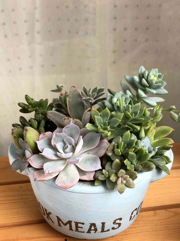 多肉の寄せ植えメタリカの綺麗な色が映えます💕