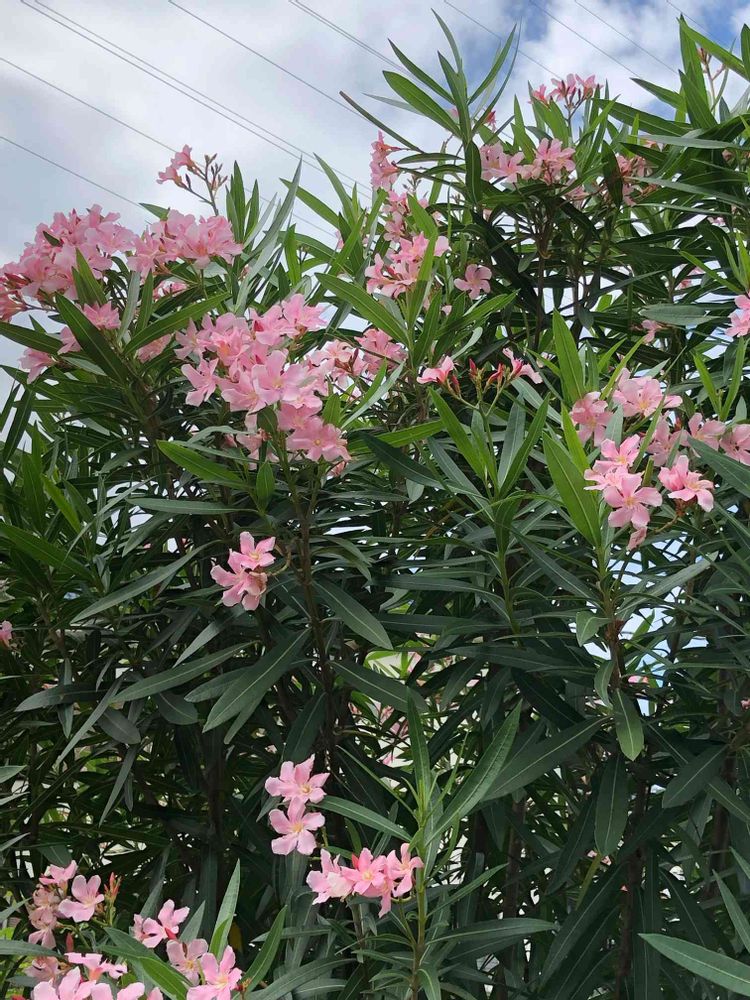 ✨🤗🧚キョウチクトウのお花だと思いますが〜良く学校の周りに咲いてますよね〜🍎赤,🕊️白,❇️ピンク〜