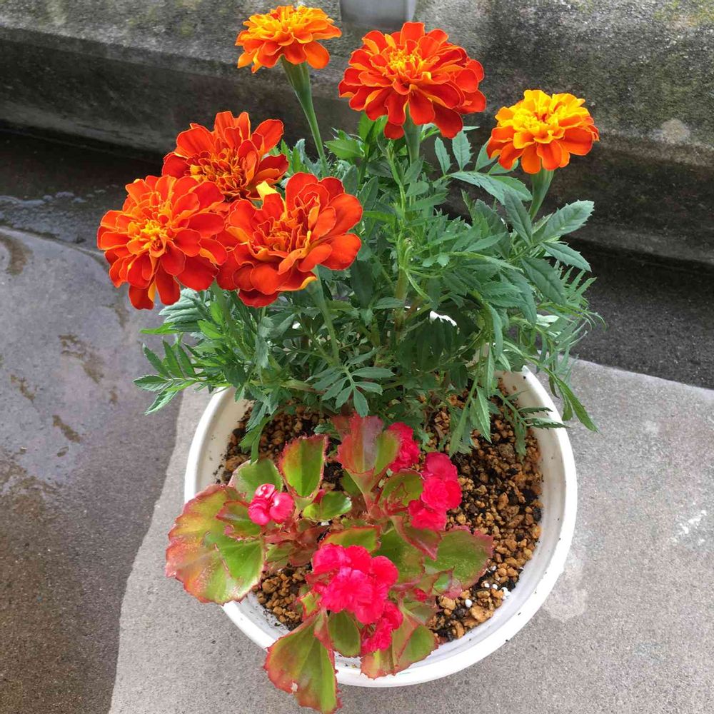 バルコニー/ベランダ,マリーゴールド,八重咲きベゴニア ボンボリーナの投稿画像