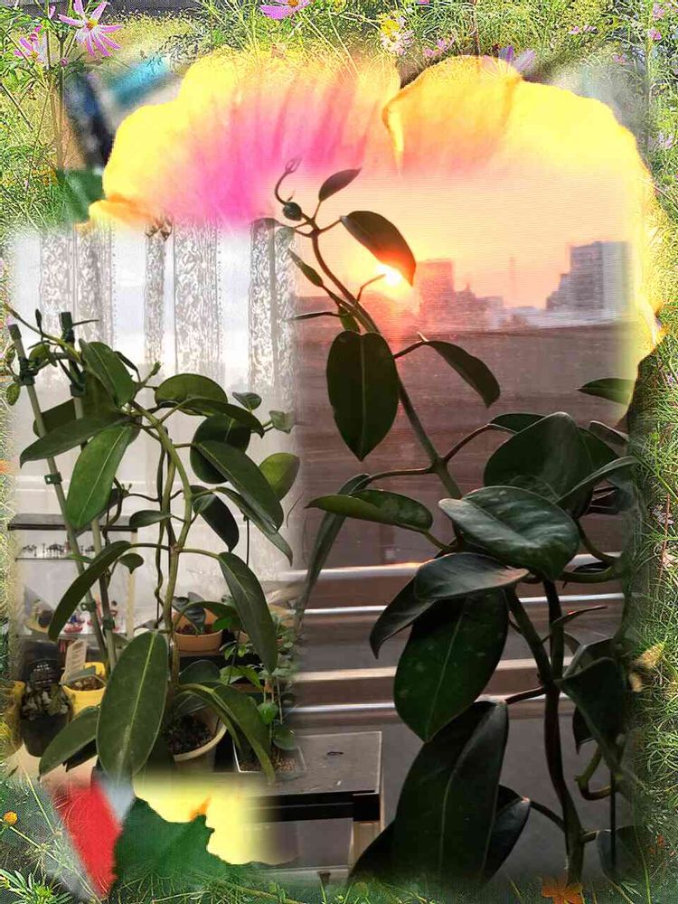 窓辺,マダガスカルジャスミン 支柱にまいてあげたあと,マダガスカルジャスミン 自由に伸びているときの投稿画像