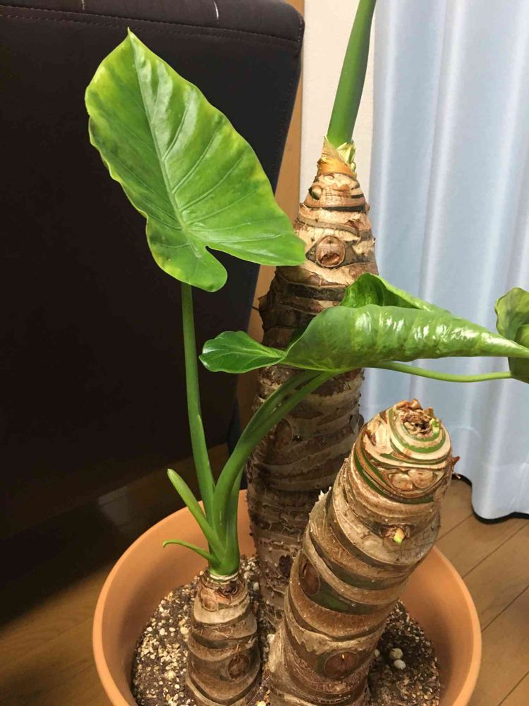 今年引っ越して初めてのクワズイモ。5月に我が家にお迎えしました。