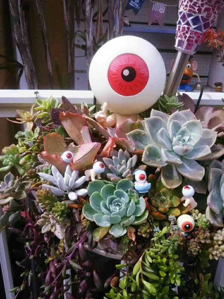 目玉のオヤジ大好き❣️ 飾りをつけると多肉も可愛い❤️