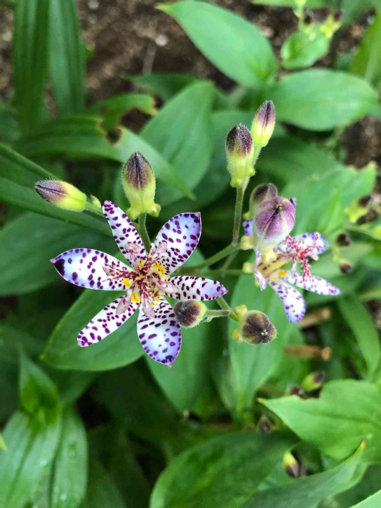 今年の春頂いたイワチドリの鉢に、先日シロバナホトトギスが咲きびっくりです!😳