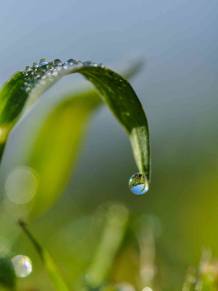 朝の澄んだ空気が綺麗な青空を水滴に映してくれました😄