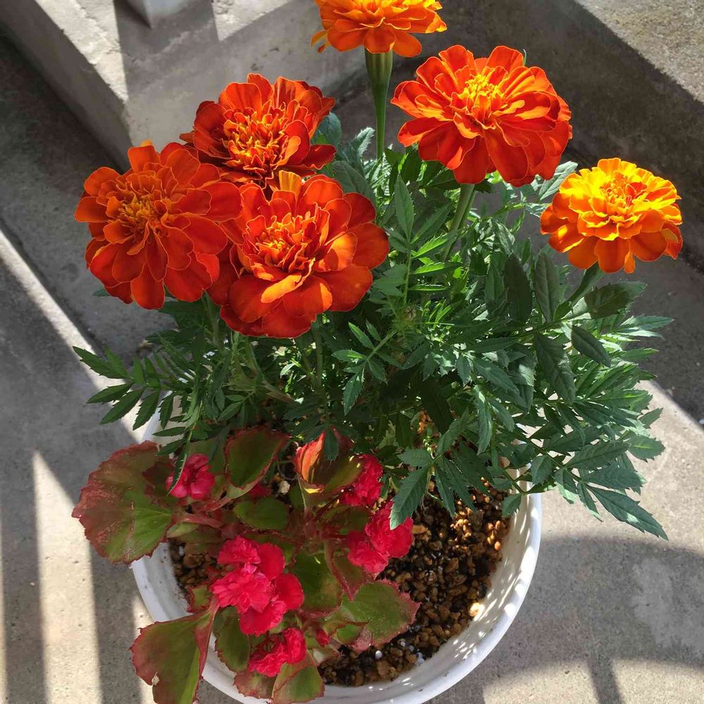 バルコニー/ベランダ,マリーゴールド,八重咲きベゴニア ボンボリーナの投稿画像