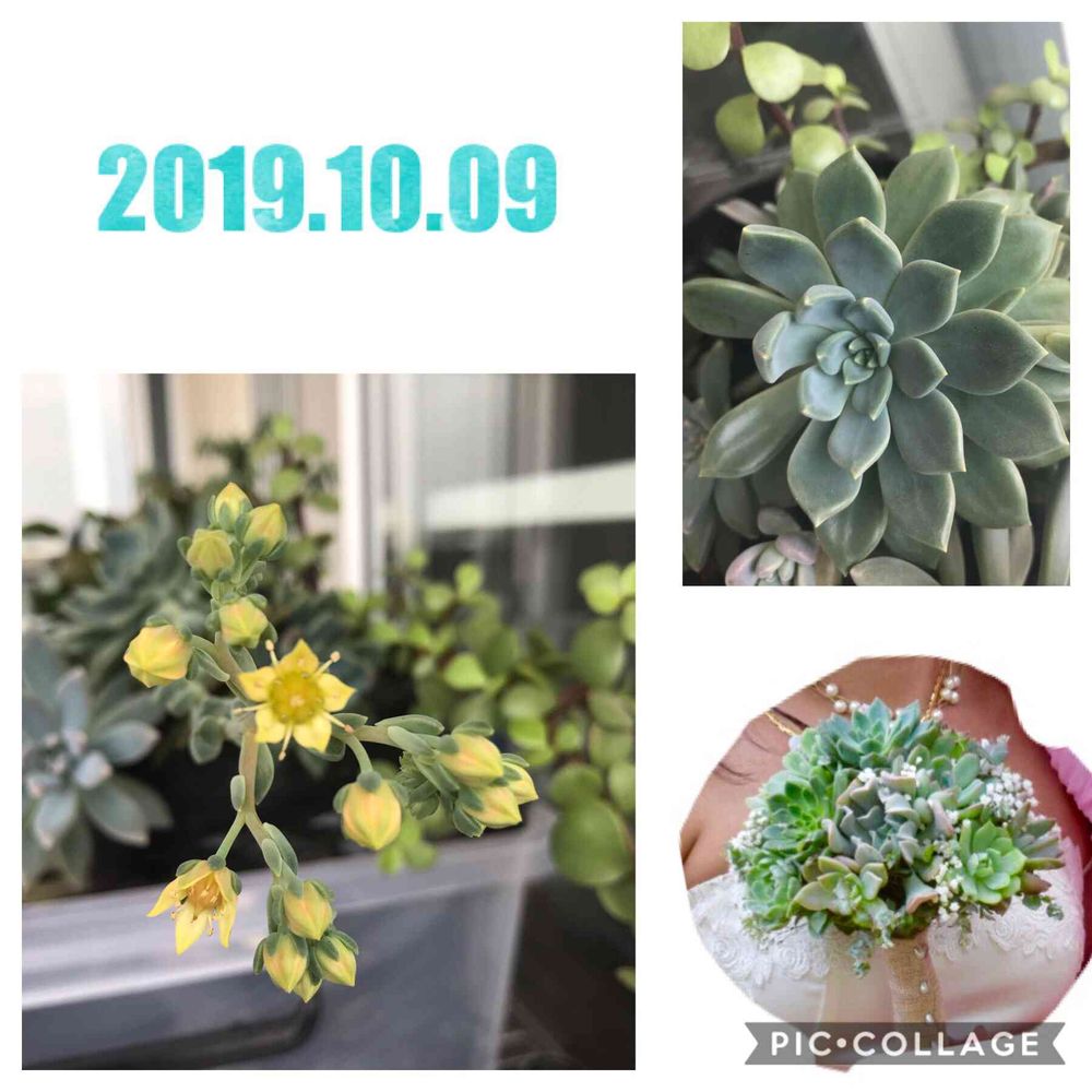 一年半に結婚式で使った多肉植物のウェディングブーケから植え替えてこの多肉から初めて花咲いた♥おおきくなったなぁ🥰