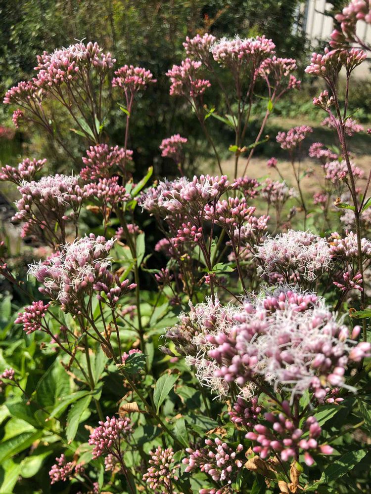 フジバカマは5号鉢に植えて、花壇に埋めてるけど、しっかり自立した枝が伸びて花もたくさんだよ🌸