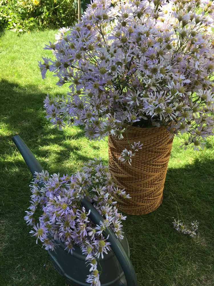 シオンのお花もこうして束ねるといいですねー! 子供の頃、裏庭に雑草のようにたくさん咲いていたけれど、それとは違って大人っぽい雰囲気〜♥︎︎∗︎*゚😊