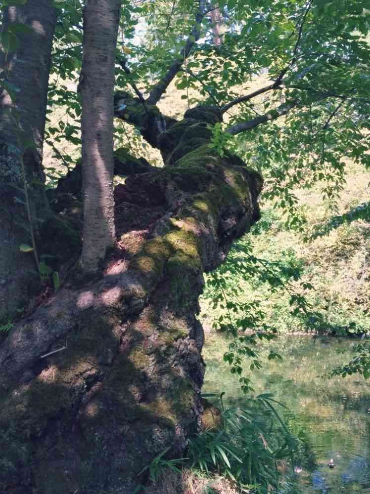 弘前城のお堀端の桜、樹齢何年でしょうかね⁉️ 苔が生えて、曲がりくねってます🌿