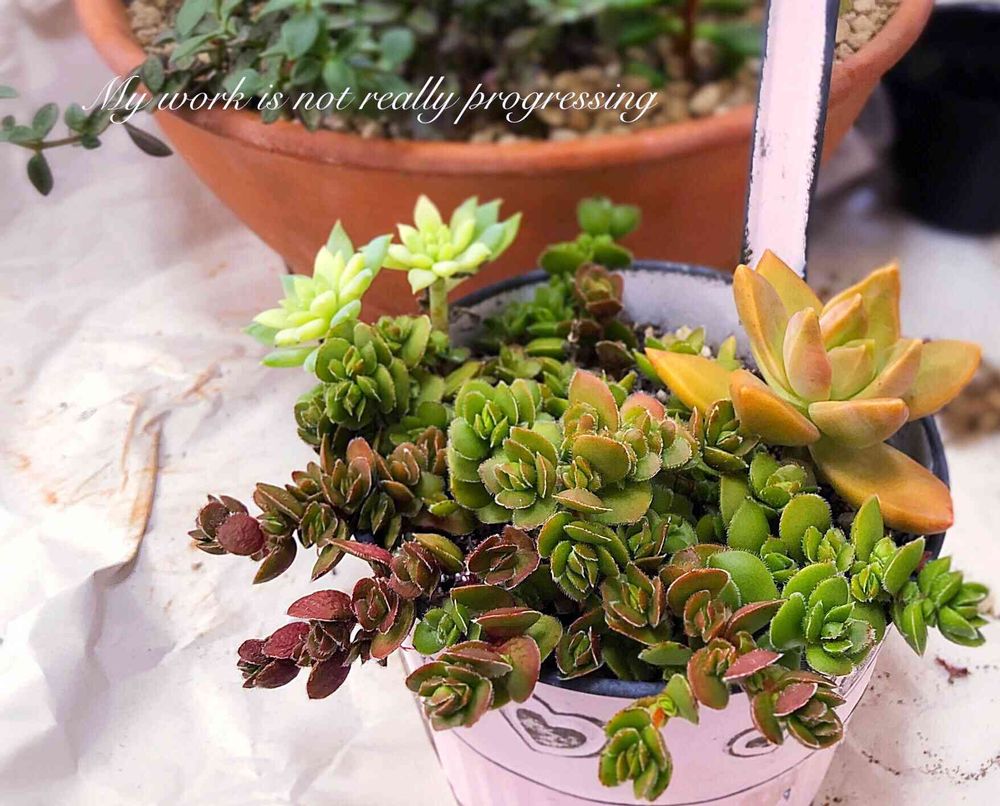忙しい中多肉ちゃんのお世話が癒しの時間になっているのかな❓