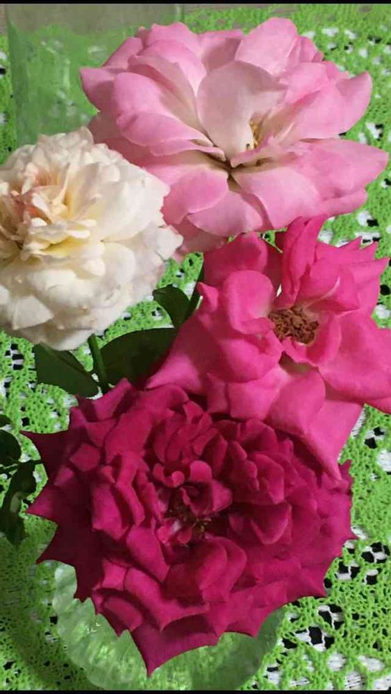 お庭に咲いてた薔薇さんを、玄関先の廊下のテーブルに飾りました^_^♡♡♡