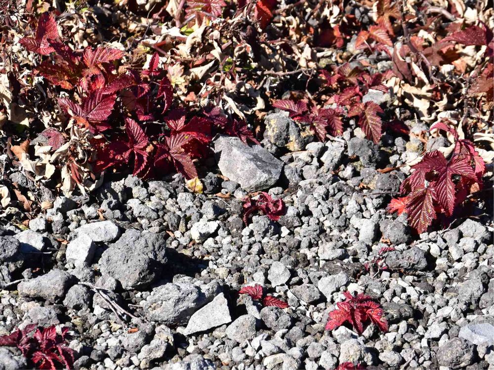 どう見てもミヤマニガイチゴの葉なんだけど、こんなふうに群生するの?落葉低木だから紅葉のはずなんだけど、なんか赤い新芽みたいにフレッシュに見えるし…