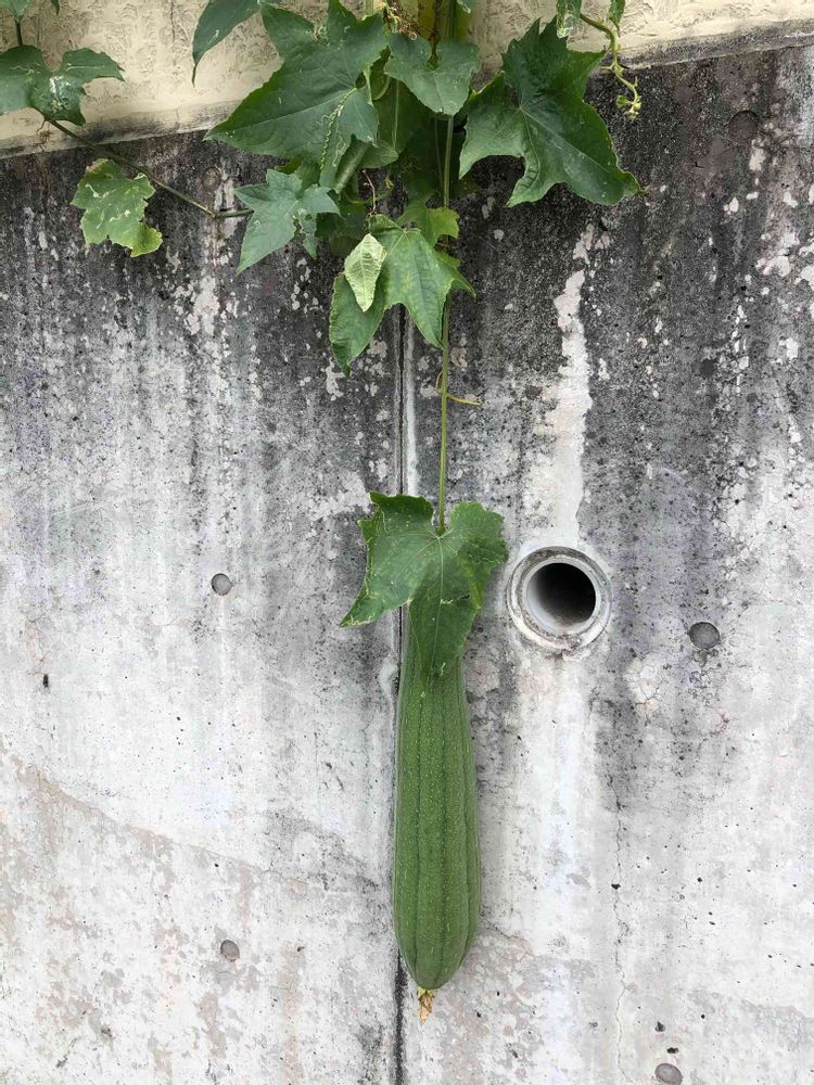 お散歩途中垣根には、へちまのカズラやお花がたくさん、目を下に移したらなんと、ご立派なへちまがぶら下がっていました😊💕(@_@)