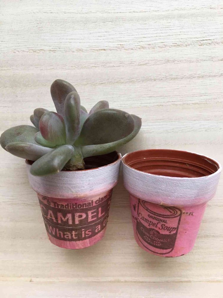 色を塗って貼っただけので、リメイクとまでいきませんが缶やもうちょっと大きめ鉢にも挑戦します(^_^)v
