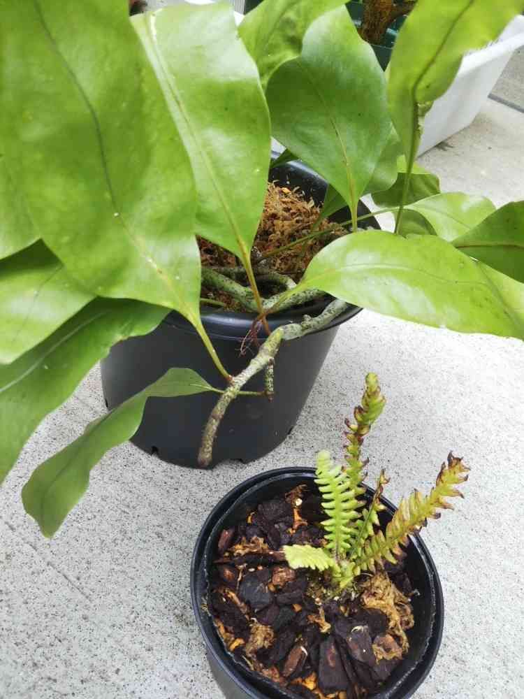 沖縄から🍄さんの素敵便で来た南国のシダ🎵 奥のウラボシのおまけに謎のシダも😋
