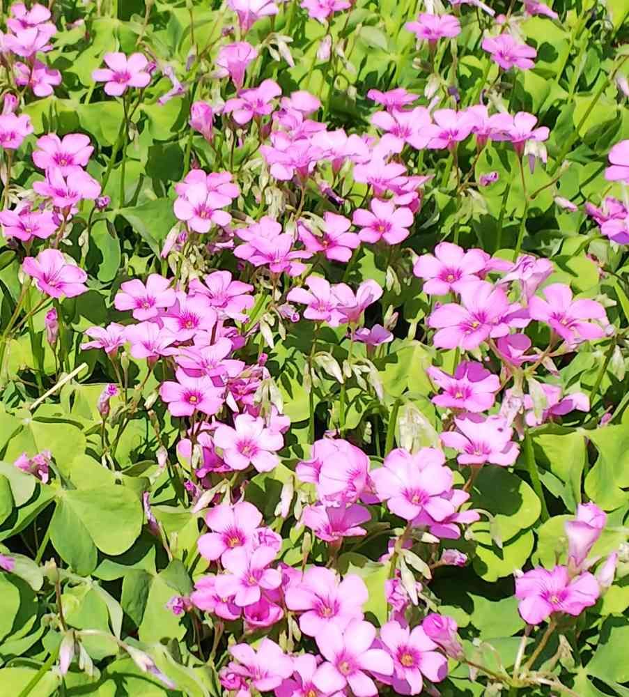 昨日、散歩🐕️💕の途中で撮りました。土手にピンクのオキザリスが元気よく咲いていました。😄