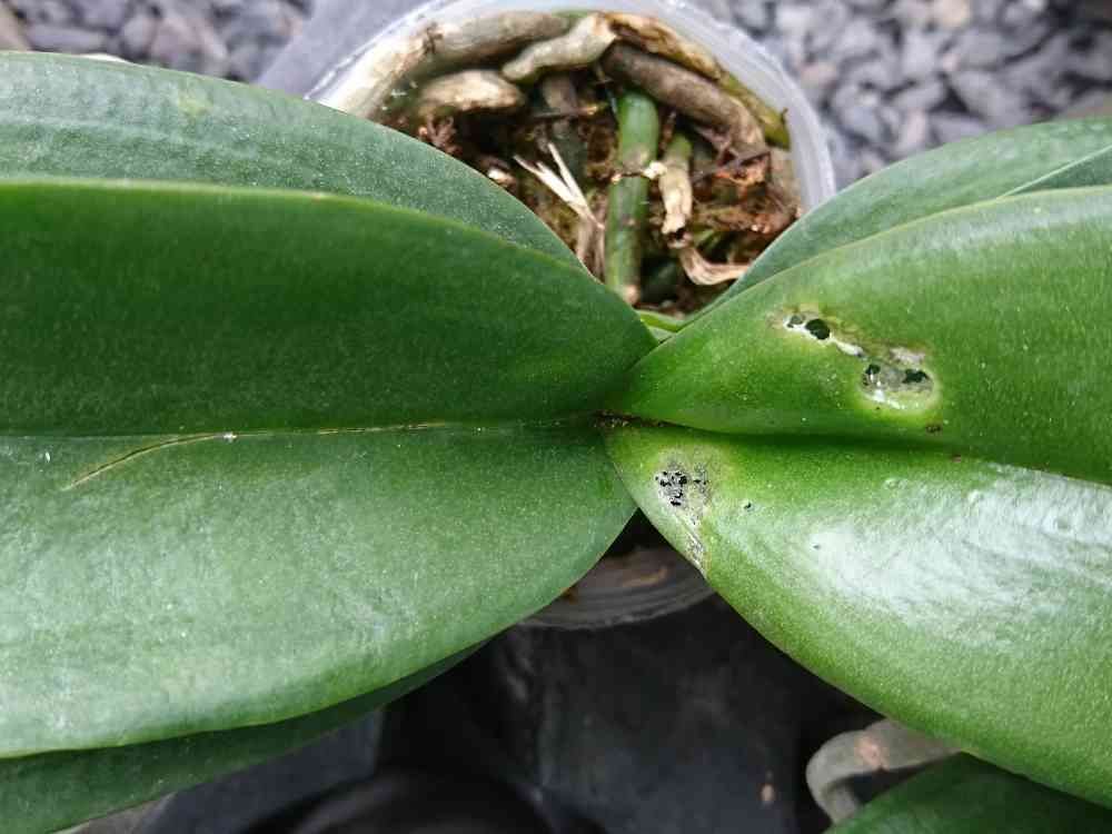 胡蝶蘭の暴れた根っこが葉っぱの上に、おっ🎵元気~っ😙と思ったらデッカいナメクジがお食事中でした。2箇所も食べたておりました🤕。ナメクジよ‼️(お持ち帰りだったら軽減税率8%のナメちょんぱ✂️の刑、OR 外食による通常税率10%のナメちょんぱ✂️の刑)×2箇所食いの現行犯。 ナメクジであるが故のいつものちょんぱの刑✂️とはちょっと違うぜ❗もう、ちょきちょきの刑に処すったぜ🔥🔥🔥。胡蝶蘭よ🤕、めげずに立ち直っておくれ🙏🙇。